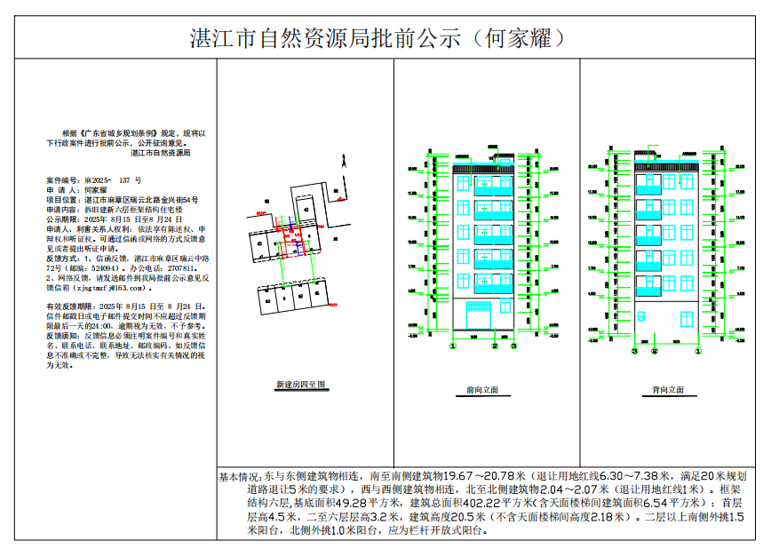 (何家耀)核发一幢框架结构六层住宅楼《建设工程规划许可证》批前公示