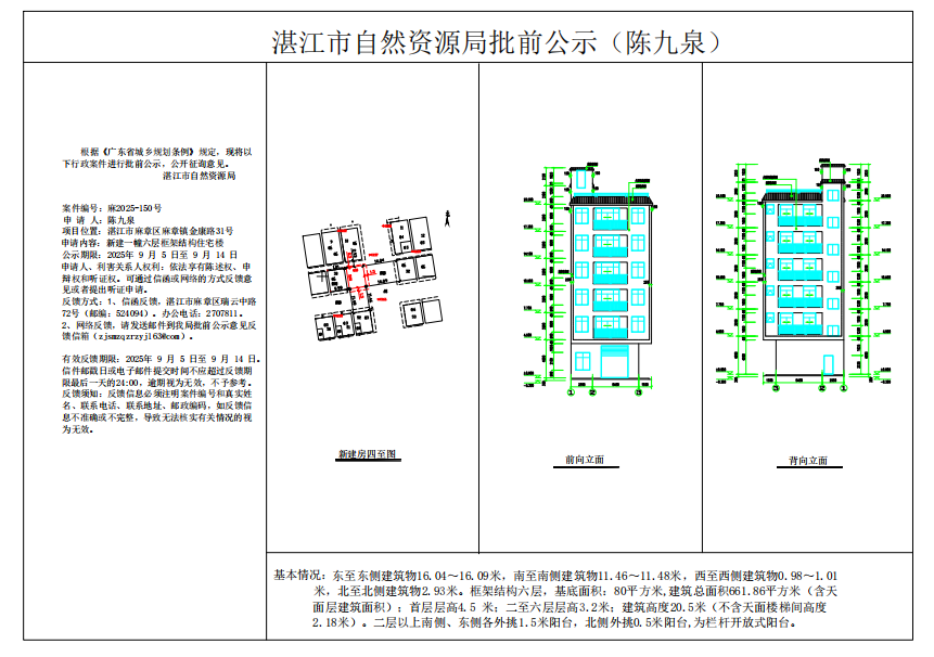 (陈九泉)核发一幢框架结构六层住宅楼《建设工程规划许可证》批前公示