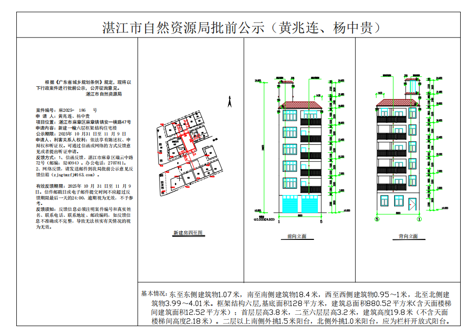 (黄兆连、杨中贵)核发一幢框架结构六层住宅楼《建设工程规划许可证》批前公示