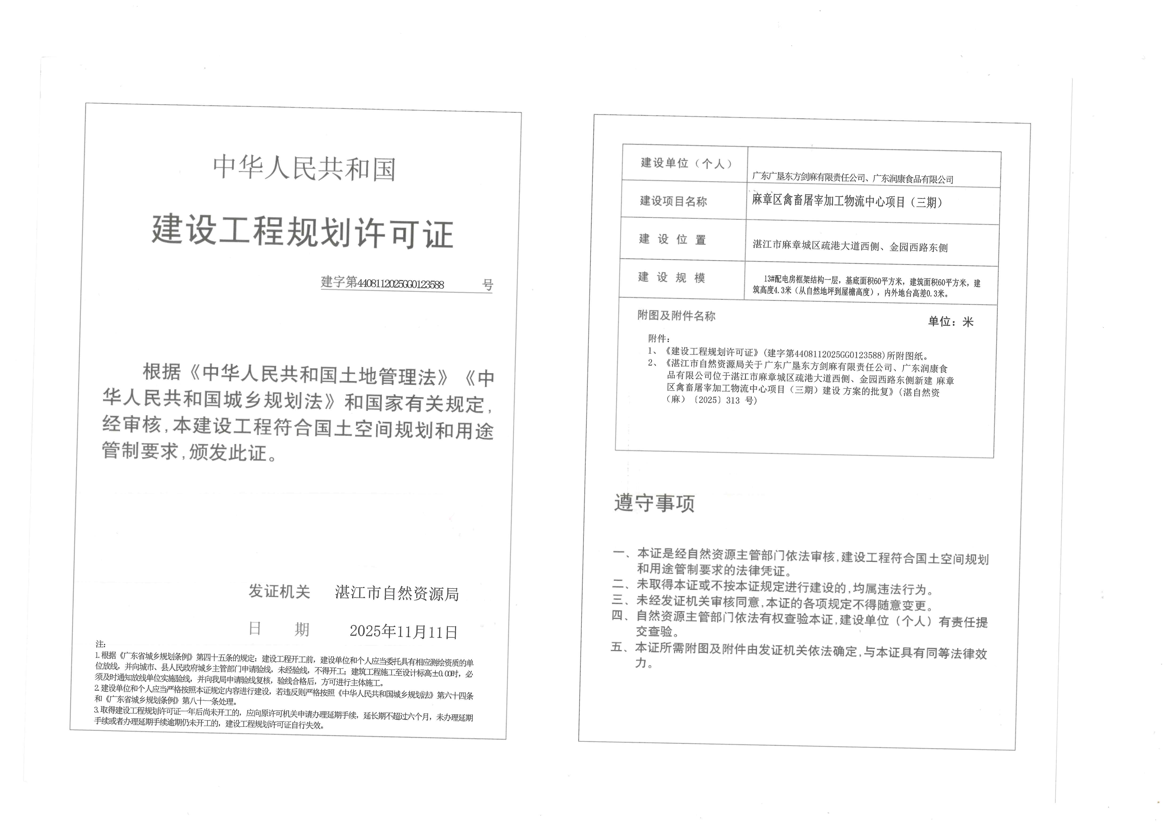 (麻章区禽畜屠宰加工物流中心项目(三期))建设工程规划许可证