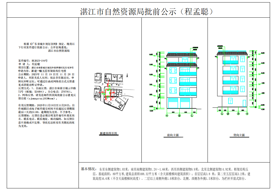 (程孟聪)核发一幢框架结构五层住宅楼《建设工程规划许可证》批前公示