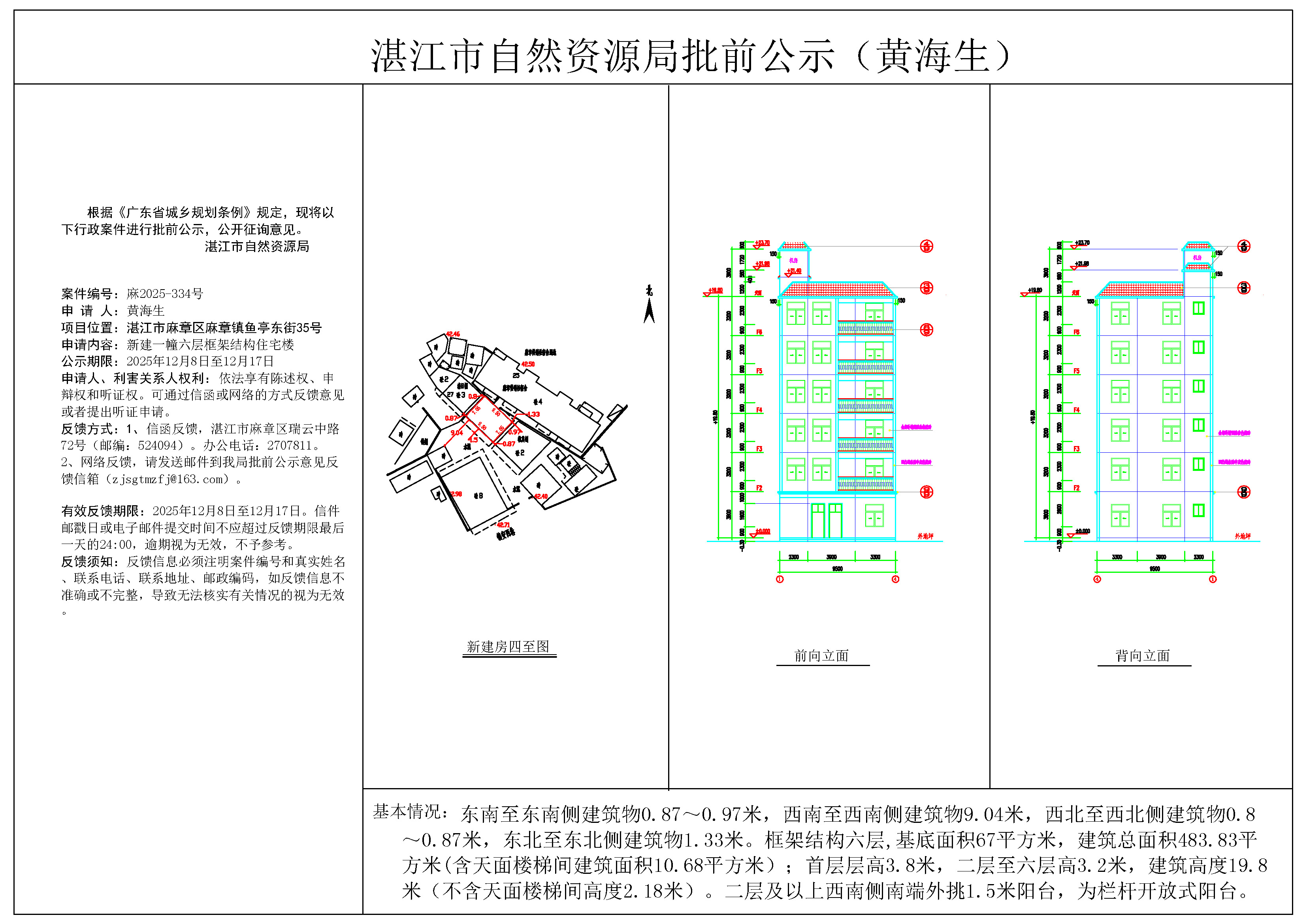 (黄海生)核发一幢框架结构六层住宅楼《建设工程规划许可证》批前公示