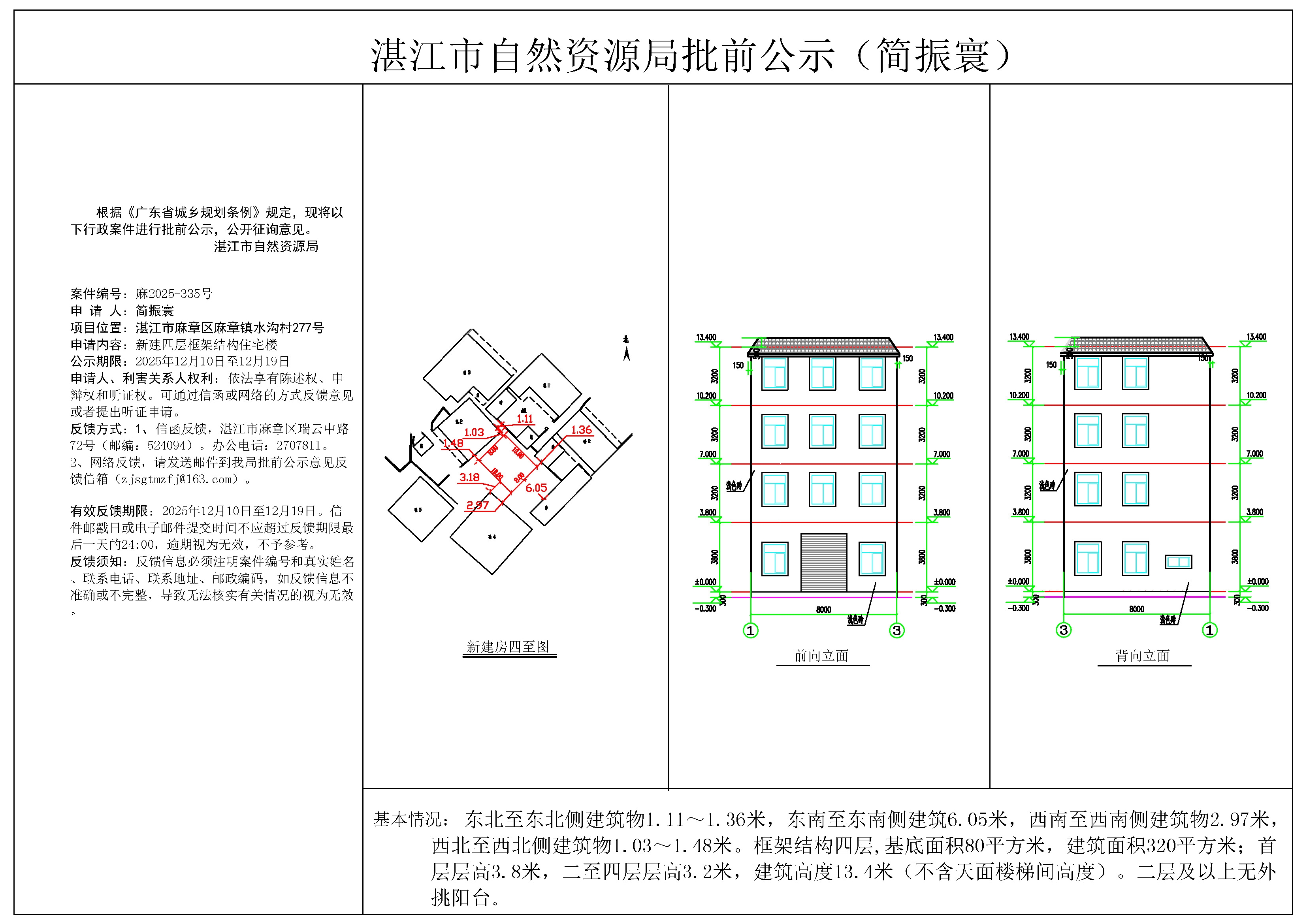 (简振寰)核发一幢框架结构四层住宅楼《建设工程规划许可证》批前公示