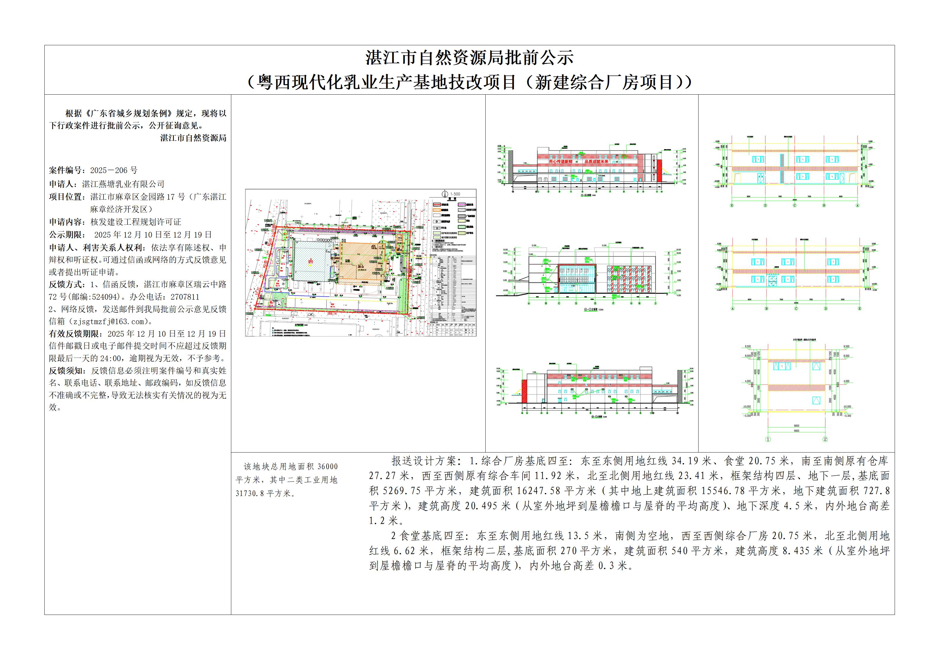 《粤西现代化乳业生产基地技改项目(新建综合厂房项目)》湛江市自然资源局批前公示