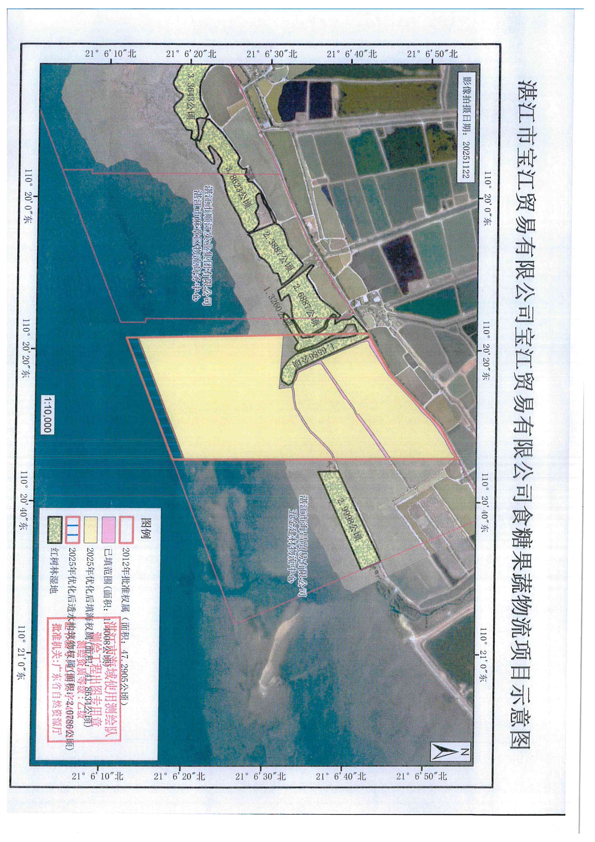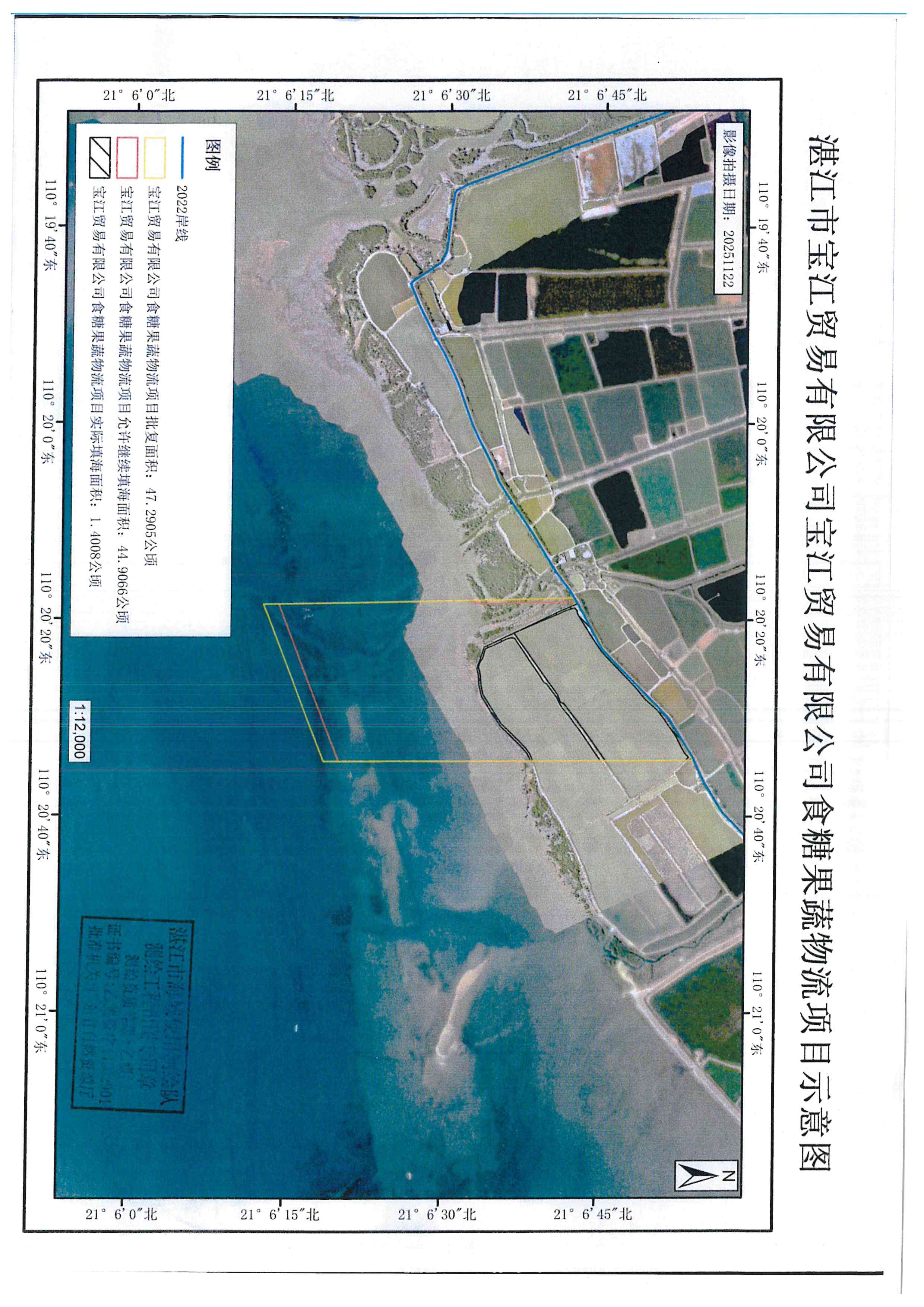 湛江市宝江贸易有限公司拟申请湛江市宝江贸易有限公司食糖果蔬物流项目用海变更,根据《中华人民共和国海域使用管理法》《广东省海域使用管理条例》有关规定,对拟用海单位提出的用海变更申请进行公示,公示期10日,如对所公示用海有异议的,请在公示期内以书面形式向我局反映。以个人名义提出意见的,签署本人真实姓名及联系方式,以单位名义反映的应加盖本单位印章。
