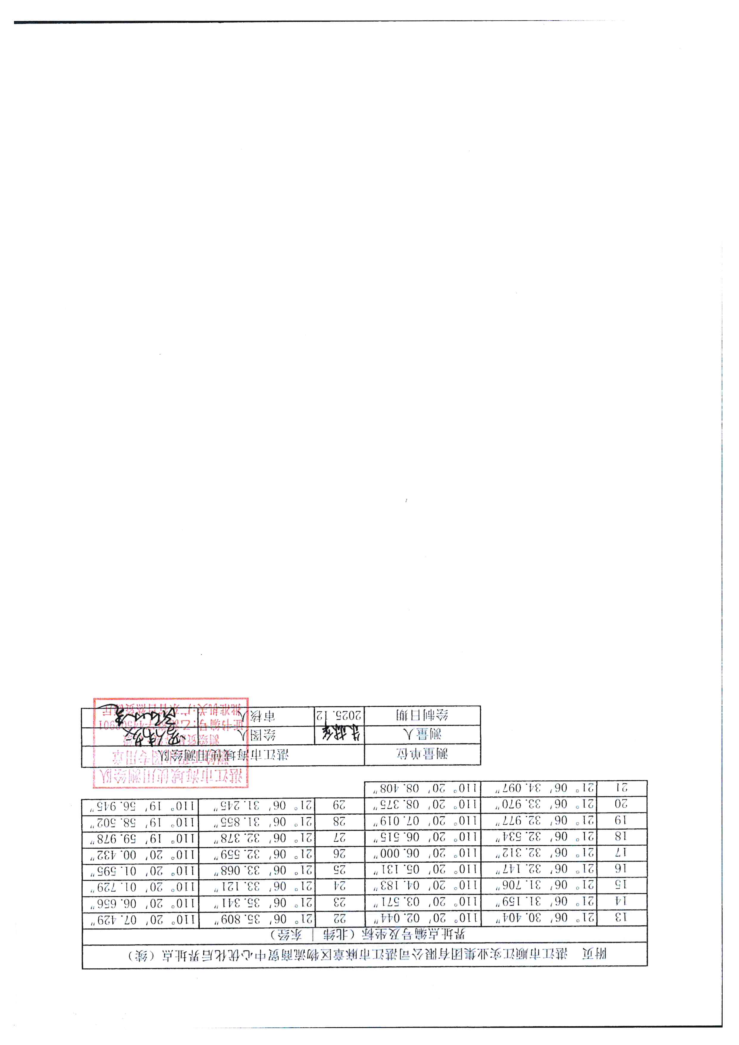 序号 | 北纬 | 东经 | 序号 | 北纬 | 东经 |