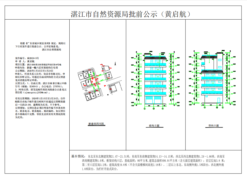 (黄启航)核发一幢框架结构六层住宅楼《建设工程规划许可证》批前公示