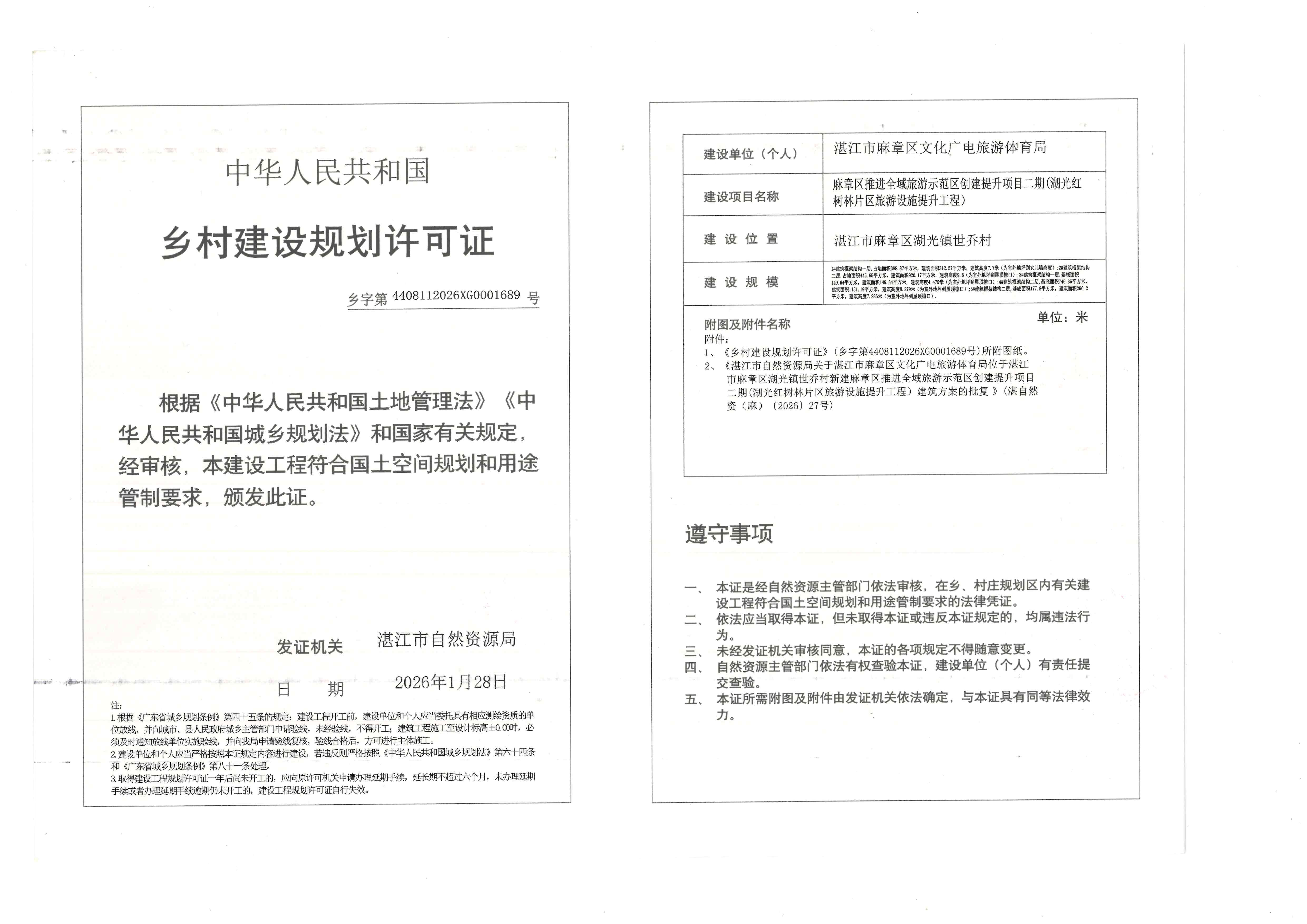 (湛江市麻章区文化广电旅游体育局)麻章区推进全域旅游示范区创建提升项目二期(湖光红树林片区旅游设施提升工程)批后公布
