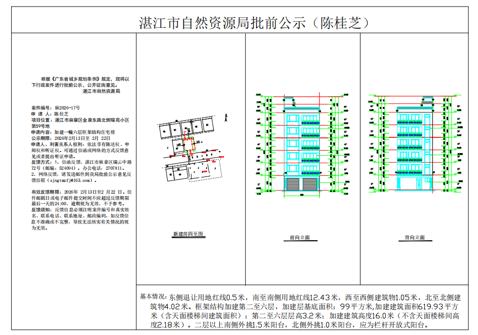 (陈桂芝)核发一幢框架结构六层住宅楼《建设工程规划许可证》批前公示