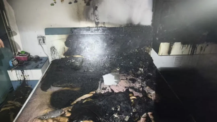 案例二:2024年12月28日,湖北武汉一小区一住户使用电极式热水袋充电时,引发电气线路起火,猛烈火势将整个卧室烧得面目全非,所幸住户及时撤离,未造成人员伤亡。