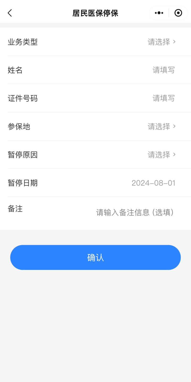 ②在申请界面,填写个人相关信息,选择参保地、暂停原因、暂停日期后提交。代他人停保时,需按要求上传个人委托书、代办人身份证正反面。