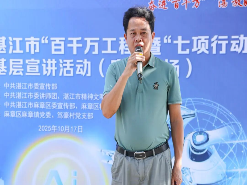 10月17日,奋进“百千万” “湛”放好声音—— 2025湛江市“百千万工程”暨“七项行动”基层宣讲活动在麻章区麻章镇笃豪村新时代文明实践站举办。活动由市委宣传部指导,市委讲师团与市文明办主办,麻章区委宣传部承办,活动吸引了众多村党员干部和群众参加。
