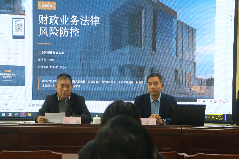 财政工作是单位运行的重要保障,每一个环节都与法律规范紧密相连,稍有不慎就可能引发风险。因此,为进一步提升财政业务的规范化水平,防范化解财政工作中的各类法律风险,区财政局于2025年12月26日下午,邀请广东诉颂律师事务所合伙人陈姿星律师开展了一场专业、实用的财政业务法律风险防控专题讲座。