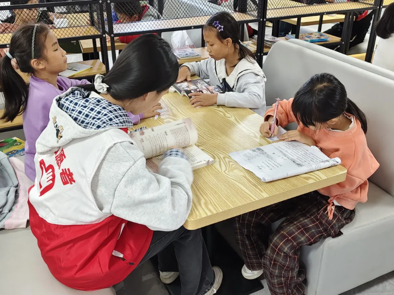 1.学业辅导与成长陪伴。每日上午设置独立阅读、读书分享、作业辅导环节,志愿者为小营员提供作业辅导、课外阅读指导、学习习惯培养等服务,鼓励小营员上台分享读书心得或电影观后感,用耐心与细心为孩子们答疑解惑,培养自主阅读习惯,锻炼语言表达能力。