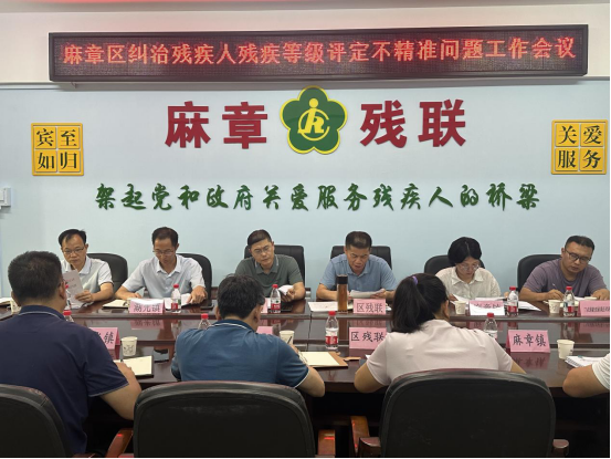 2026年4月13日麻章区残工委召开专题会议,部署纠治残疾人残疾等级评定不精准问题,并推进村(社区)残疾人协会换届工作。会议由区残联理事长卢和清同志主持。区残联、区卫健局、湖光农场相关分管领导及业务骨干,各镇分管领导及残联理事长参加会议。