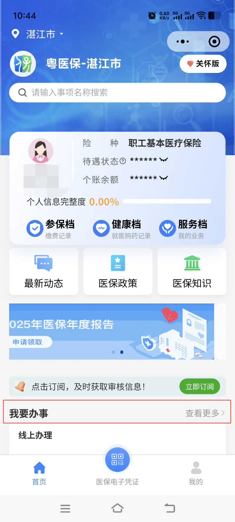 (1)登录“粤医保”首页--我要办事--查看更多;