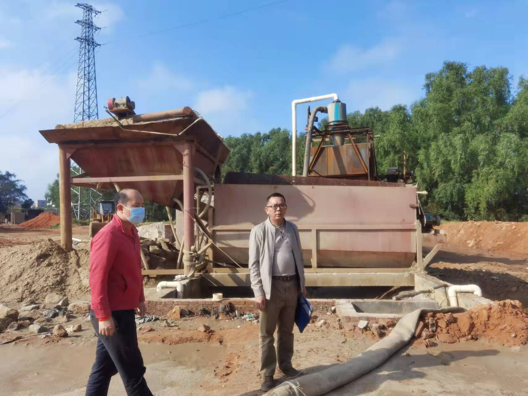 为推进“春风利剑”专项行动深入发展,全面掌握区内各河流采砂洗砂相关情况,2022年1月27日上午,受麻章区农业农村和水务局党组书记、局长郑聪同志委托,局党组成员、副局长黄培能同志率队相关股室负责同志对各涉河洗砂场进行了检查。