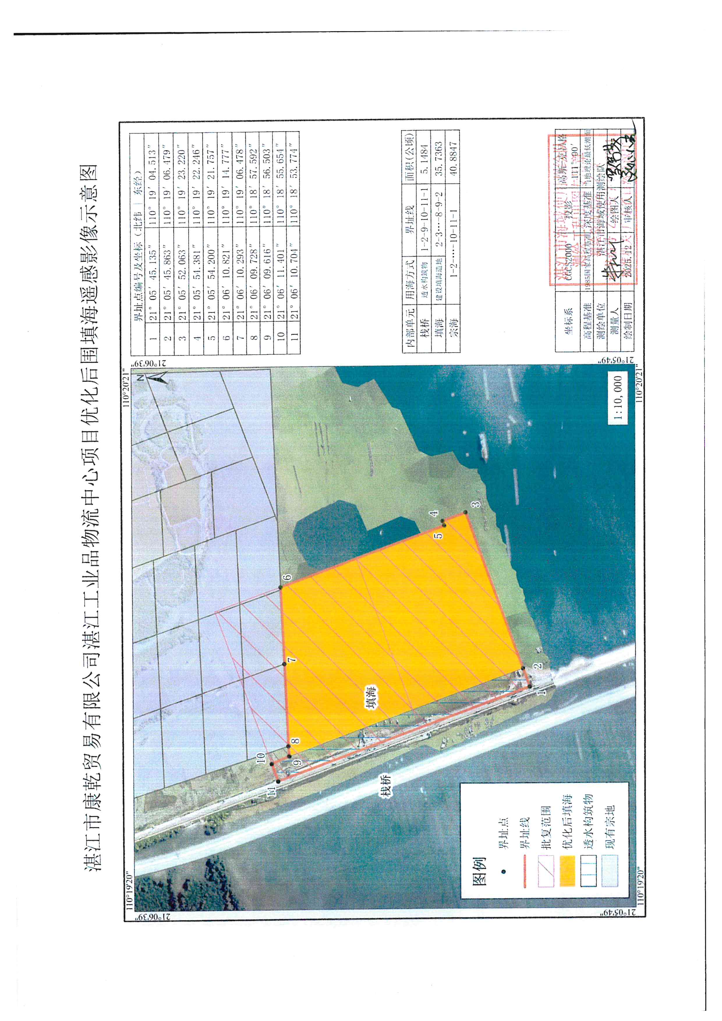 用海概况:项目原批复用海面积为47.9035公顷,用海方式为建设填海造地,用海期限50年,至2063年3月31日止。现申请变更用海面积为40.8847公顷,其中填海造地用海面积为35.7363公顷,透水构筑物用海5.1484公顷。用海期限保持不变。