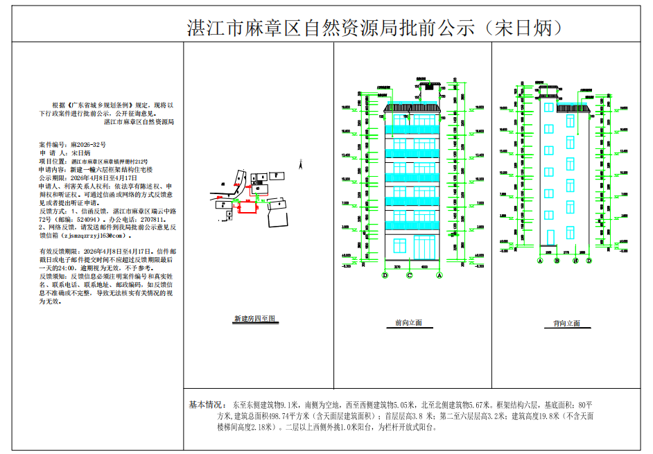 (宋日炳)核发一幢框架结构六层住宅楼《建设工程规划许可证》批前公示