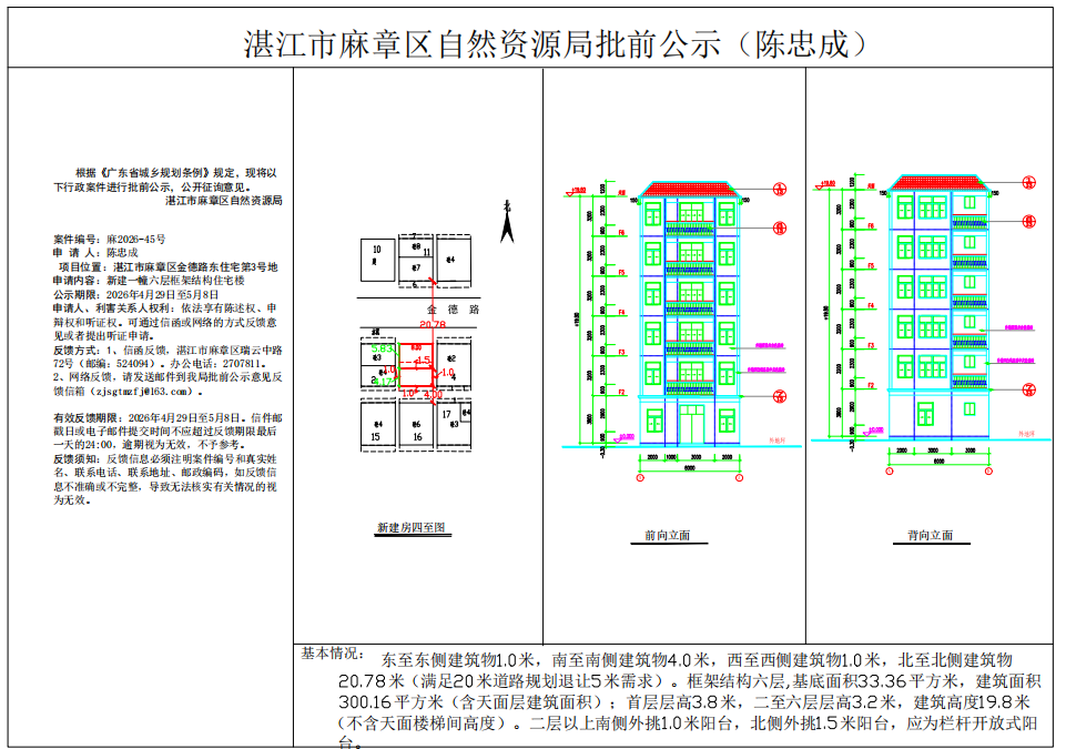 (陈忠成)核发一幢框架结构六层住宅楼《建设工程规划许可证》批前公示