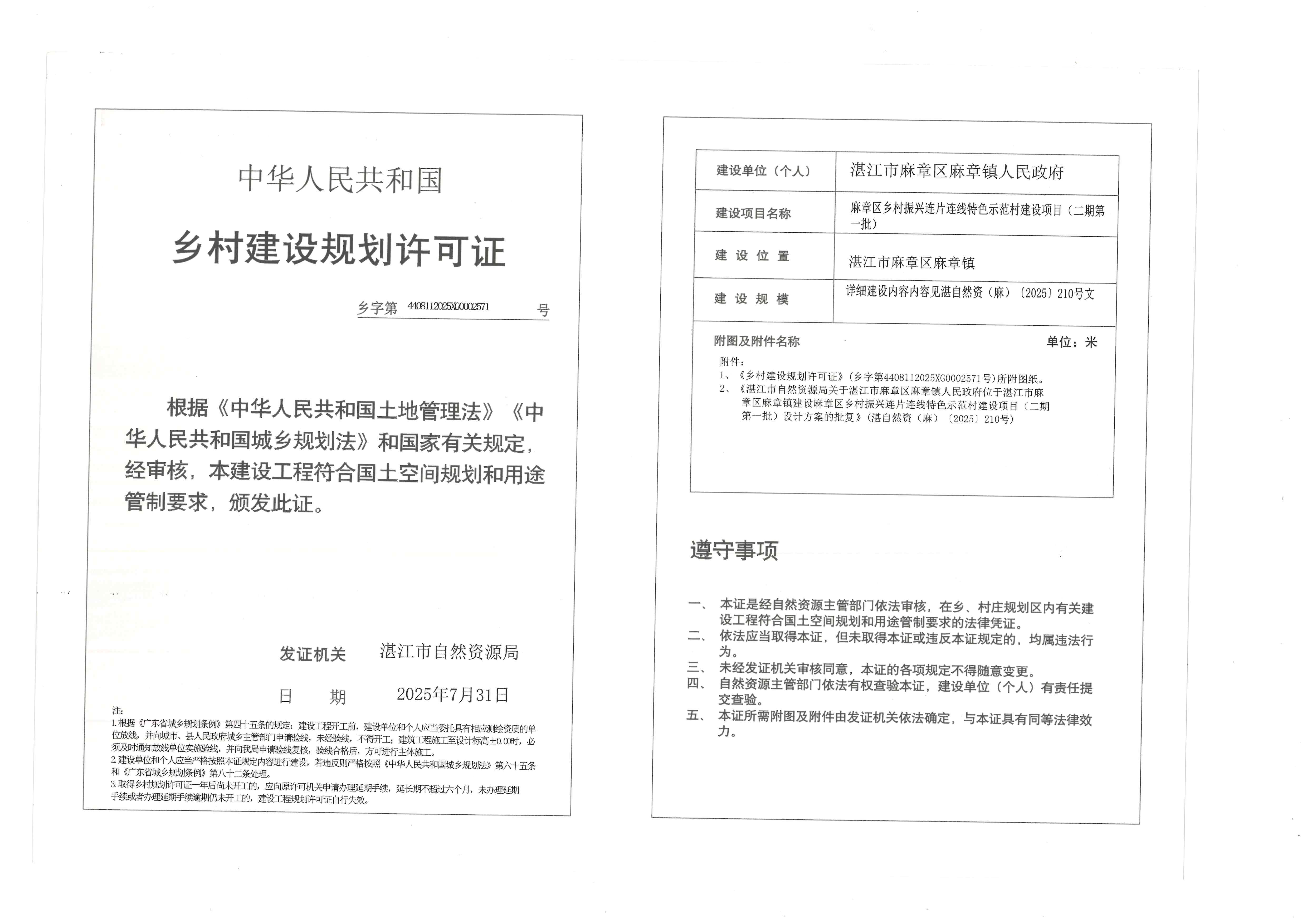 (麻章区乡村振兴连片连线特色示范村建设项目(二期第一批))建设工程规划许可证