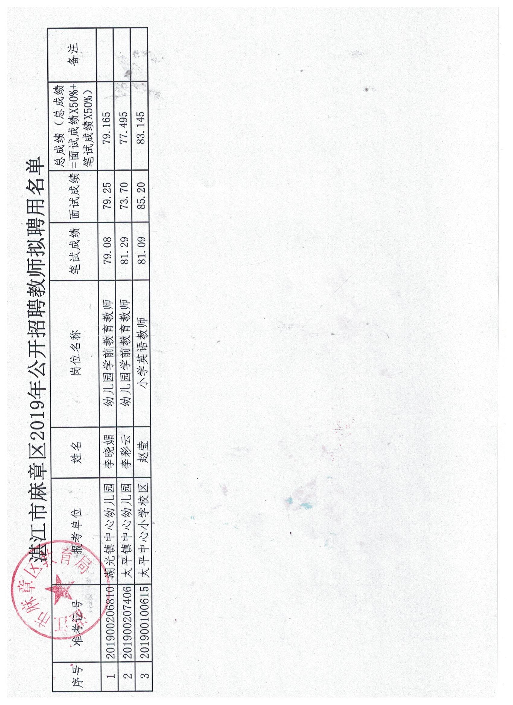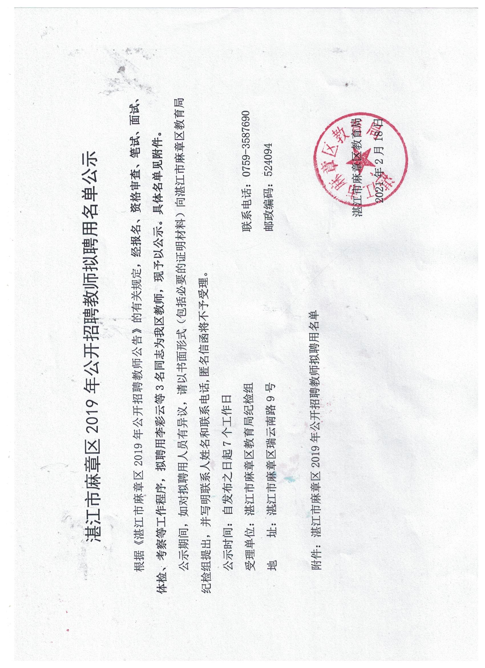 湛江市麻章区2019年公开招聘教师拟聘用名单公示(扫描版).jpg