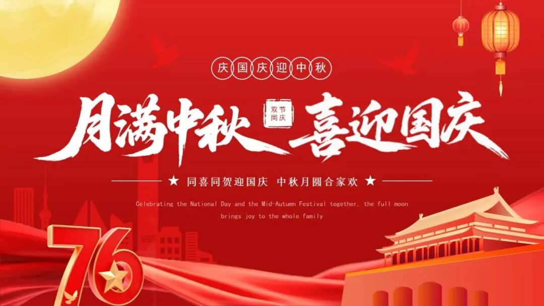 这个秋天,圆月与五星红旗在天际并肩。