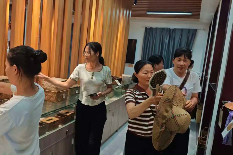 课后,学员们走进了蒲草编织品展示厅。这里陈列着从日常用品(如篮子、手提包、帽子)到艺术收藏品的各类作品。看到普普通通的蒲草竟能化身如此精美、实用的物品,大家无不惊叹。