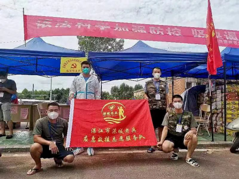 首批援助北和抗疫的港城老兵有59人,由港城老兵周聪带队。其中雷州市12人,霞山区10人,吴川市9人,坡头区8人,开发区7人,麻章区6人,遂溪县3人,湛江市直2人、赤坎区1人。这些退伍老兵中,60岁以上的有共4人、50至60岁的有6人,都参加过“0506”抗疫任务;而大部分志愿者则是年轻的队员,也参加“0506”支援坡头抗疫任务,表现相当突出。8月7日下午,第一批志愿队火速赶到雷州北和二中集结,队员们刚放下行装后,即在周聪队长、唐中元副队长的组织指挥和带领下马上投入工作,连续搬卸10车抗疫物资,连夜分组上街防控巡逻排查,直到深夜12时才休息。8月8日开始接受最艰险任务,勇挑重担,配合协助公安部门到高风险区26个卡点,头顶烈日、冒着高温天气、迎着大雨24小时执行把守巡逻排查防控任务,队员穿着厚厚防护服那种感觉是多么难受,但是港城老兵们却从不叫苦叫累,对艰险毫无畏惧,时时表现出良好的军人素质和作风,展示了勇于担当,甘于奉献的大无畏革命精神,用高昂的斗志和热情,攻坚克难、勇于值守,得到雷州和北和党委政府和当地群众的好评。他们中每个人的事迹都令人感动!让人佩服!