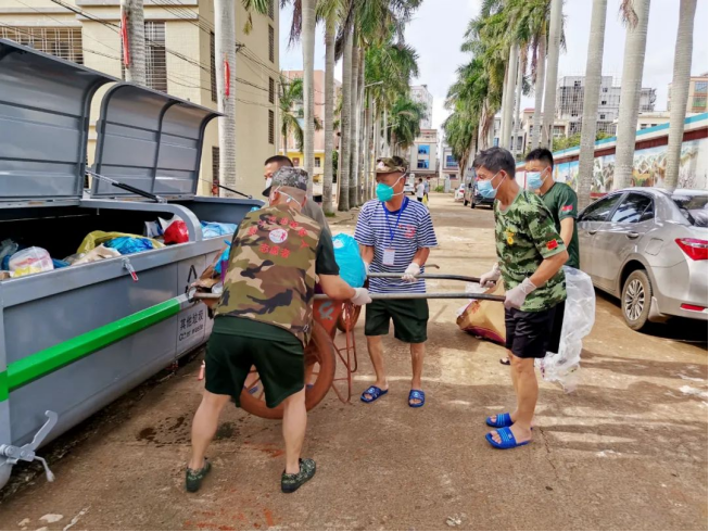 8月11日中午,坡头区港城老兵分队在谢日乾队长的带领下,在完成岗位执勤任务后,利用休息时间,清理臭味难闻的垃圾,开发区的港城老兵林香球闻讯后,也主动请缨,加入清理垃圾队伍中,经过几个小时奋力拼搏,最终将这些臭气难闻的垃圾全部清理掉,给当地群众创造一个整洁有序的环境,当地群众拍手叫好。