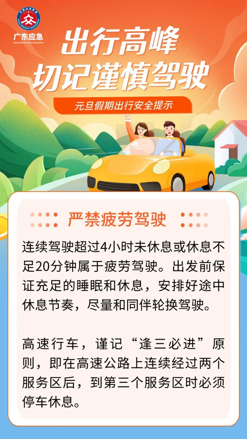 12月29日,广东交通集团发布元旦出行指引。2026年元旦假期为1月1日至1月3日,高速公路不实行免费通行政策。预计12月31日(元旦假期前一天)会出现出城高峰,1月3日迎来返程小高峰。车流压力主要集中在珠三角区域,小型客车占比较高。