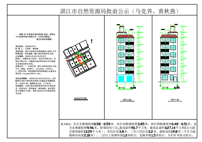 (马党养、黄秋燕)核发一幢框架结构六层住宅楼《建设工程规划许可证》批前公示