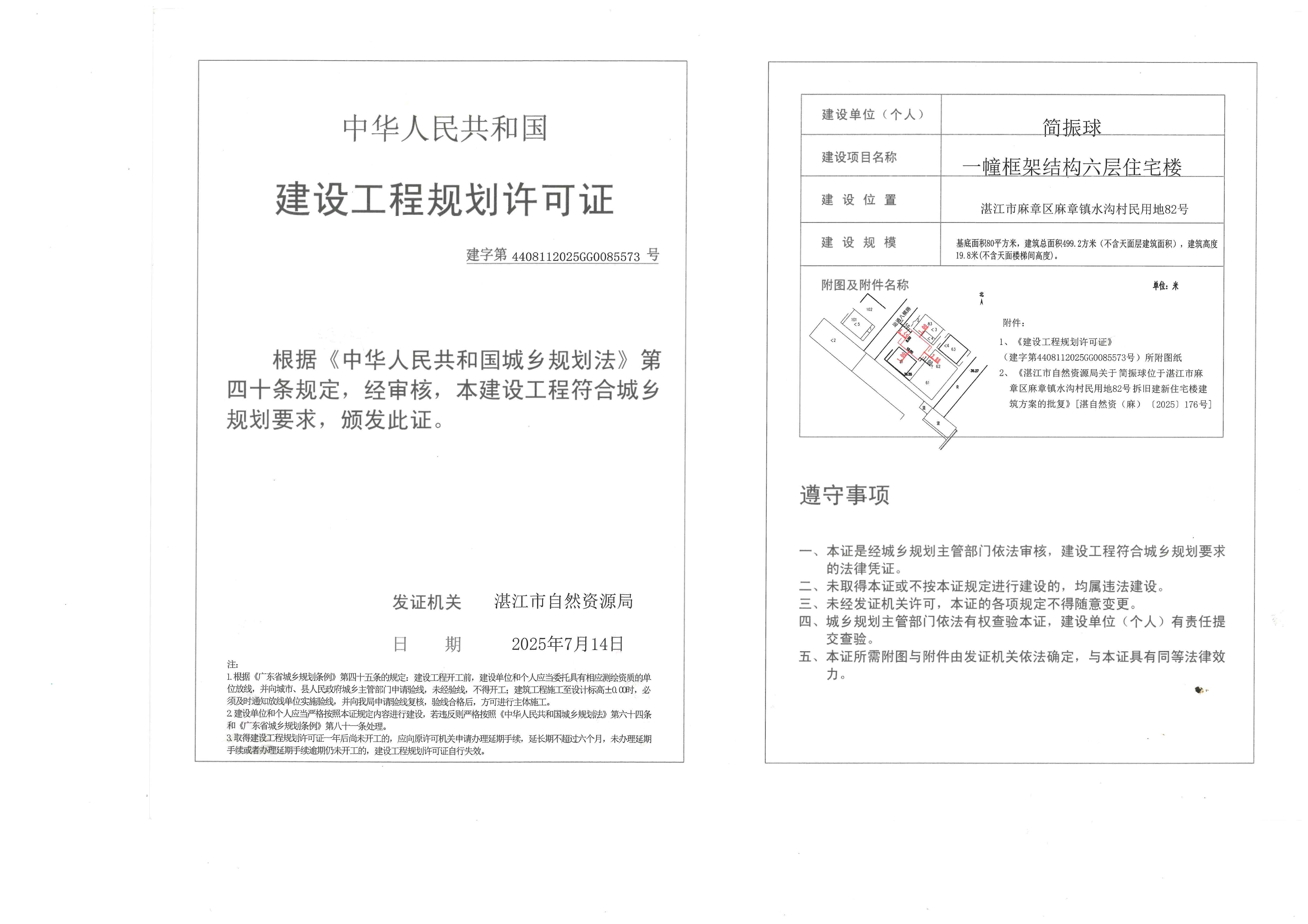 (简振球)建设工程规划许可证